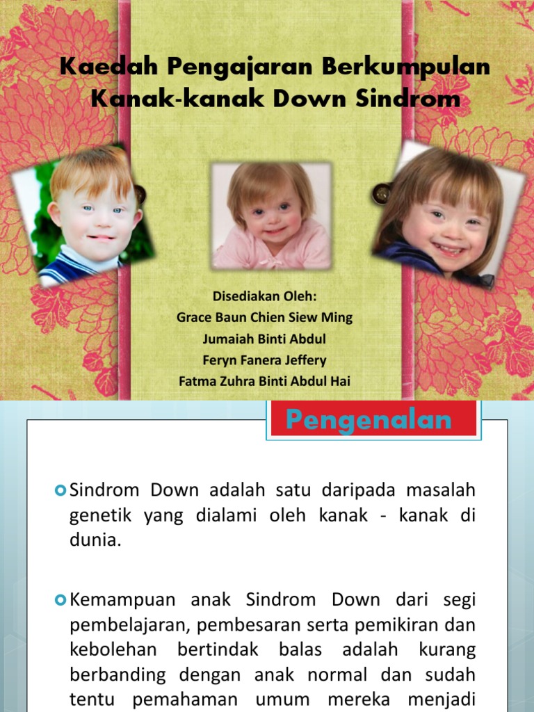 Hal ini penting untuk meransang kanak kanak sindrom down untuk belajar.