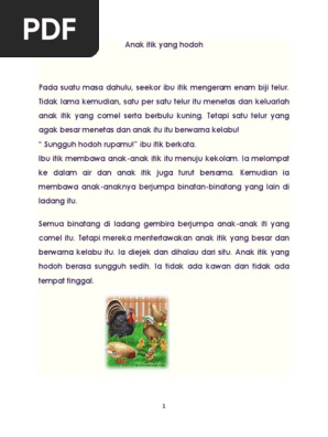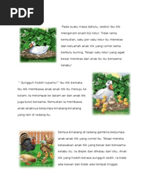Anak itik yang hodoh pdf. Anak itik umur 1 hari dod pada masa stater bisa dibuat juga kandang box dengan ukuran 1 m2 mampu menampung 50 ekor dod day old duck. Anak itik umur 4 minggu keatas umumnya sangat peka terhadap penyakit ini duck cholera sangat merugikan peternak itik karena dapat menyebabkan kernatian yang tinggi pada itik dara dan petelur. Kemudian ia membawa anak anaknya berjumpa binatang binatang yang lain di ladang itu. Ada seekor ibu itik sedang menanti 6 biji telurnya menetas.