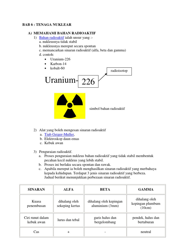 Bahan radioaktif sains tingkatan 4. Peluruhan radioaktif duration. 8 1 sifat aloi dan kegunaannya aloi merupakan campuran yang mempunyai sekurang kurangnya satu jenis unsur logam. Nota padat sains tingkatan 4 adalah himpunan nota nota sains yang terpilih dari seluruh negara. Contohnya bagi karbon isotop karbon 14 carbon 14 ialah unsur radioaktif manakala karbon 12 carbon 12 adalah stabil.