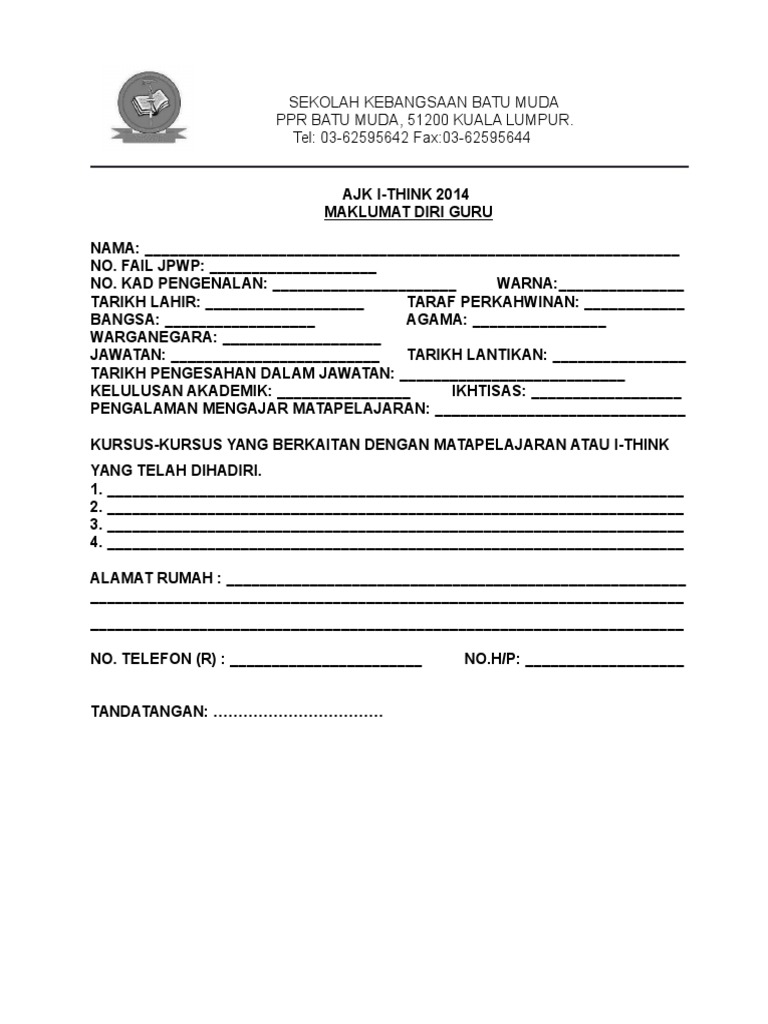 The file extension pdf and ranks to the documents category. Use the download button below or simple online reader. Untuk tujuan elektronik gl dan faedah pencen. Semoga perkongsian ini dapat memudahkan cikgu cikgu dalam menyediakan maklumat peribadi.