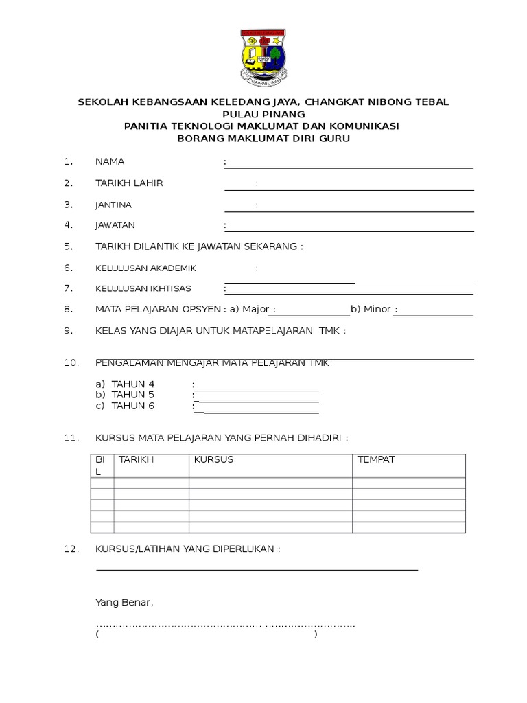 Sila isikan maklumat keluarga tuan puan pada ruangan yang disediakan dalam jadual di bawah. Contoh borang biodata guru untuk fail panitia. Guru sumber pemeriksa kertas penceramah. Leave a reply cancel reply.