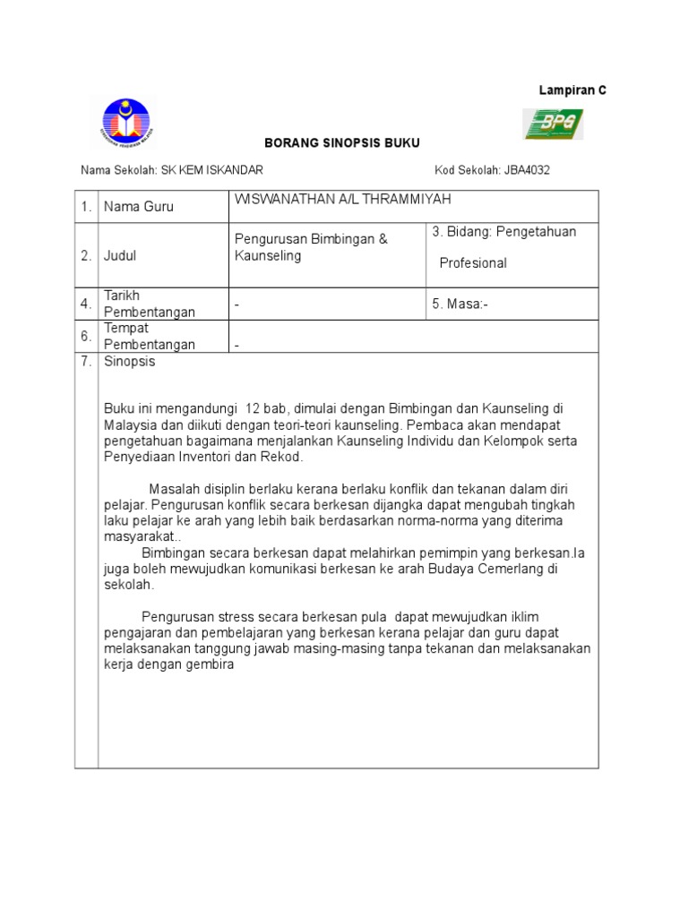 Bahagian pengurusan sekolah harian telah menerbitkan sebuah buku panduan pelaksanaan perkhidmatan bimbingan dan kaunseling sekolah pada 2015 dan jpn mula mengedarkan pada minggu ini. Buku ini mengandungi 12 bab dimulai dengan bimbingan dan kaunseling di malaysia dan diikuti dengan teori teori kaunseling. Ilmu pendidikan untuk kpli sekolah rendah.