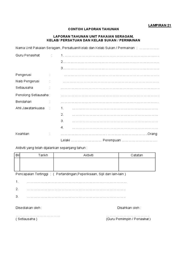 Contoh Borang Laporan Aktiviti Kokurikulum