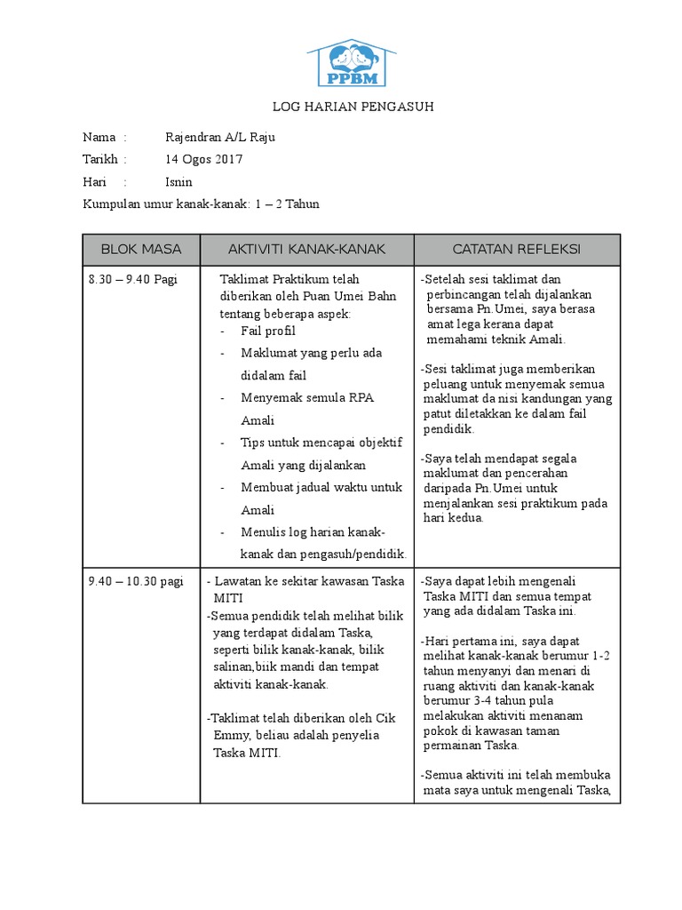 Contoh buku log harian kanak kanak. Tetapi melihatkan komitmen dari pengasuh pengasuh iman saya yakin inshaallah. Keadaan kesihatan dan fizikal kanak kanak ketika tiba di taska 3. Buku log harian kanak kanak mengandungi bahagian yang perlu diisi oleh ibubapa dan sebahagian lain yang perlu dicatatkan oleh pengasuh pendidik di taska. Saya sendiri telah melihat dan meneliti beratus naskah buku log pengakap yang rupa bentuk dan cara penyediaannya berbeza antara satu sama lain.