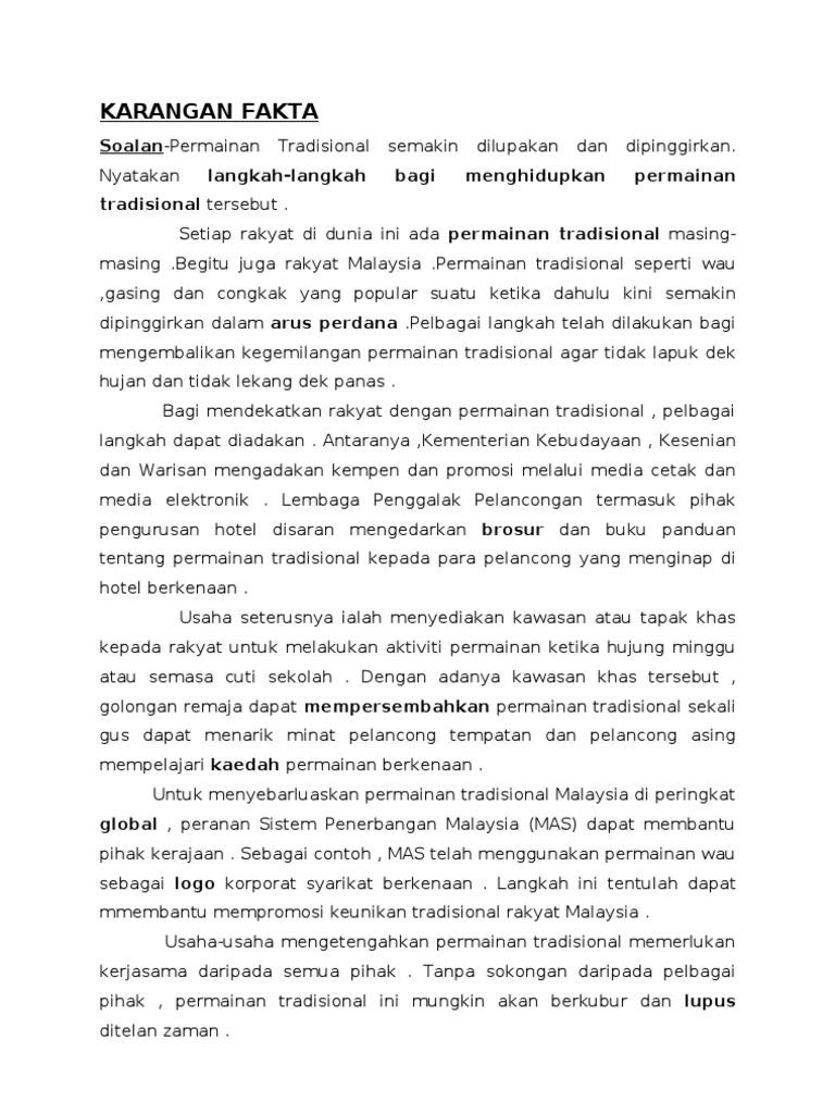 Contoh karangan fakta sekolah menengah. Ramai orang akan pergi melancong bersama sama dengan keluarga mereka terutamanya pada musim perayaan dan pada masa cuti sekolah. Kambing termasuk kedalam golongan hewan herbivora atau pemakan rumput. Ini tentu akan meningkatkan mutu karangan kita kerana banyak fakta yang kita ketahui. Panjangnya huraian hendaklah antara 200 hingga 250 patah perkataan.