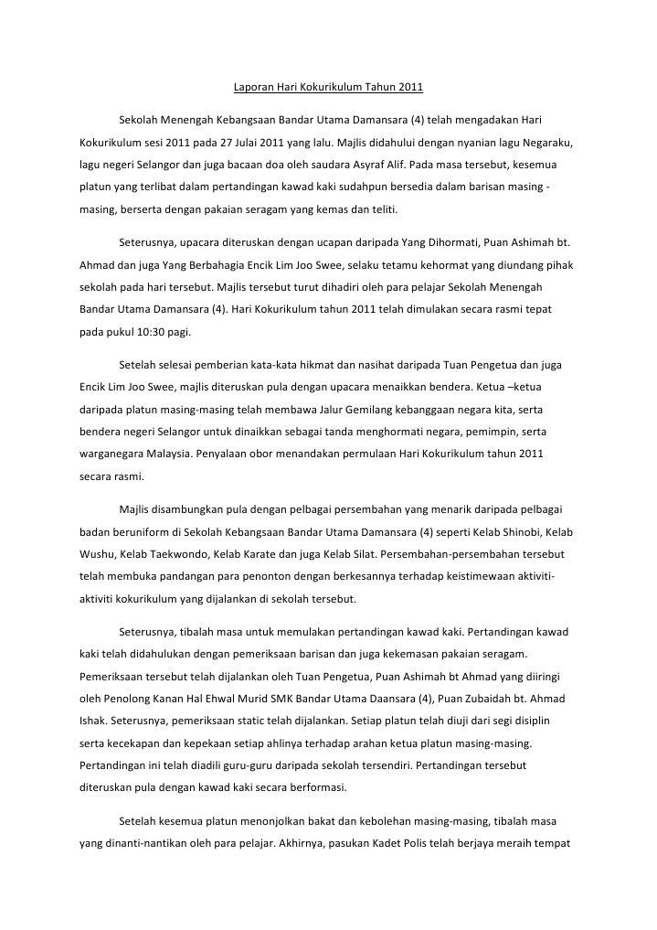 Contoh karangan laporan aktiviti kokurikulum. Sila klik link di bawah untuk melihat contoh laporan aktiviti kokurikulum yang telah dijalankan di sekolah. Contoh format laporan aktiviti laporan aktiviti universiti kebangsaan malaysia. Premis penginapan guru pengiring. Senario pelajar semasa waktu makan.