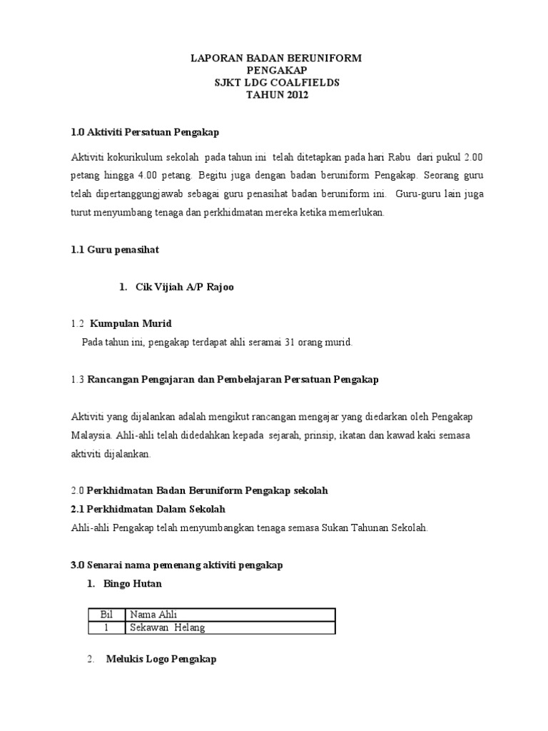 Contoh laporan aktiviti kokurikulum pengakap. Jika ada kursus maka guru yang sudah berkeluarga sukar untuk keluar bercamping berhari hari. Personal atau jurulatih dan kemudahan sedia ada di sesebuah sekolah atau institusi bagi mengendali dan melaksanakan aktiviti setiap unit beruniform. Kokurikulum contoh laporan aktiviti kokurikulum. Buku laporan fail kegiatan.