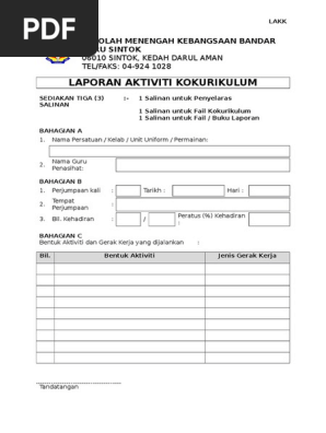 Contoh format laporan aktiviti kursus kokurikulum berkredit. Rabu tarikh masa. Muzairy bin musa matrik. Menetapkan dan mempelbagaikan aktiviti pasukan pakaian seragam kelab persatuan sukan dan permainan dengan tujuan memberi peluang kepada semua murid melibatkan diri dengan aktif secara individu dan kumpulan.