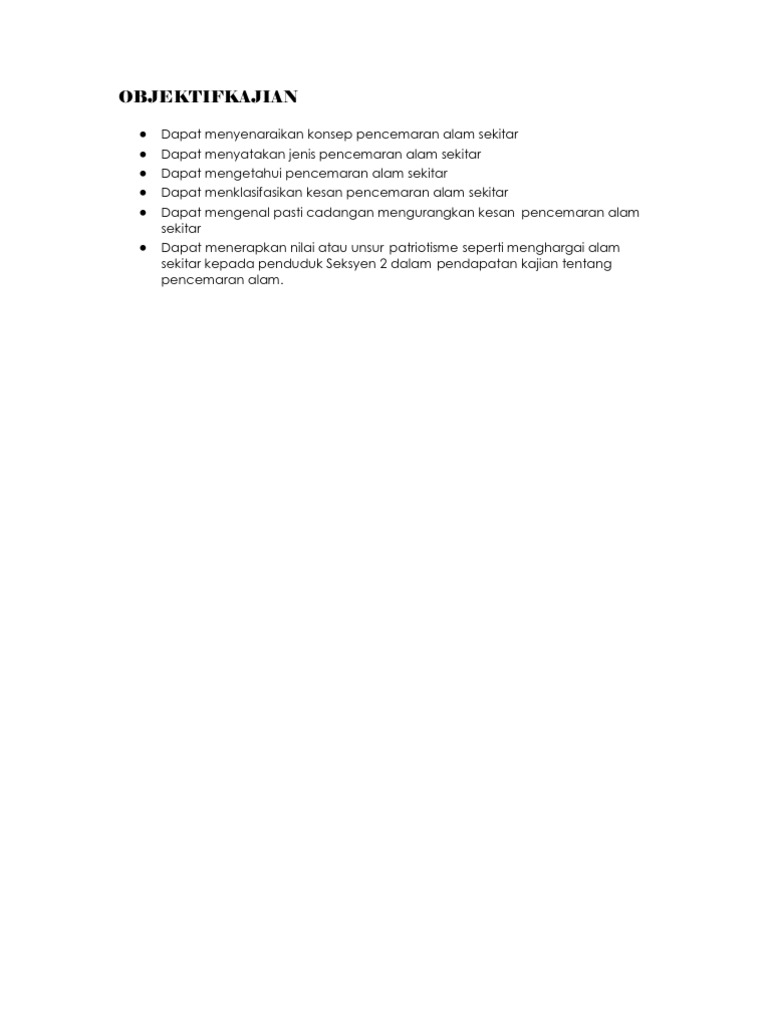 Contoh Objektif Kajian Pencemaran Alam Sekitar