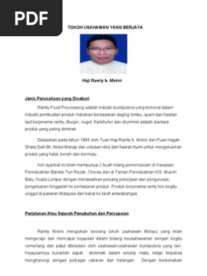 Dato haji ramly bin mokni wikipedia. The entrepreneur who is proactive is dato haji ramly bin mokni founder of ramly burger also known as the burger ramly is a malaysian street burger through pemasaran ramly mokni sdn bhd in malaysia. Dato haji ramly bin mokni tempat lahir. Beberapa kali pernah memenangi anugerah usahawan terbaik malaysia. The company was founded by ramly bin mokni in 1980 with the aim of developing a clean and good quality halal western fast food chain in malaysia.