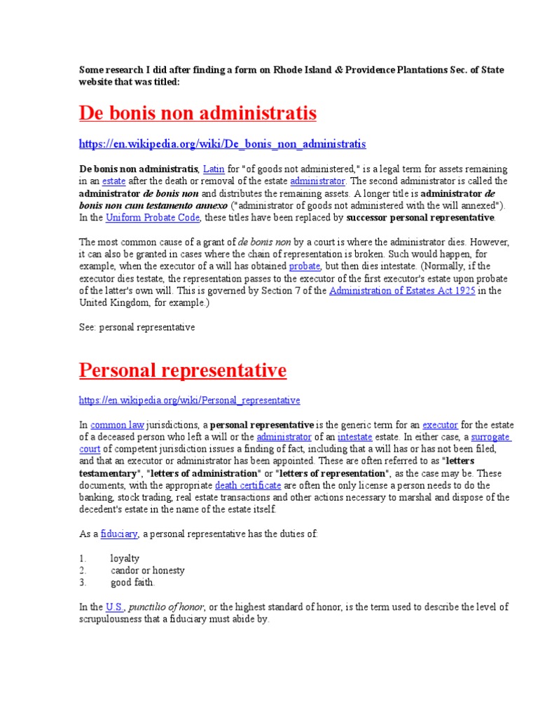 Get free legal quotation from our lawyer on your probate letter of administration or property real estate matter today or call us up for free legal consultation today. Slots roulette blackjack sports betting video poker. De bonis non administratis latin for of goods not administered is a legal term for assets remaining in an estate after the death or removal of the estate administrator the second administrator is called the administrator de bonis non and distributes the remaining assets. B surat kuasa mentadbir debonis non bagi kes kes di mana seseorang yang telah diberi surat kuasa mentadbir meninggal dunia sebelum harta pusaka simati dapat ditadbir c surat kuasa mentadbir oleh perbadanan amanah bagi permohonan yang dibuat oleh syarikat syarikat amanah.