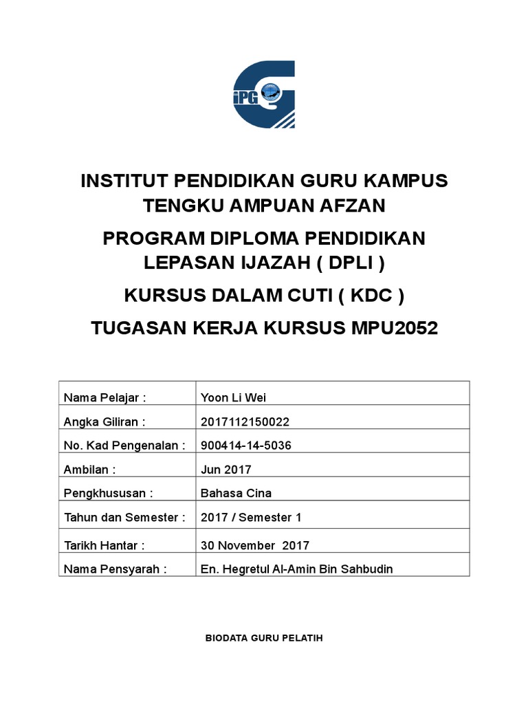 Syarat kemasukan bagi program pengajian lepasan diploma setaraf sesi akademik 2019 2020 bil. Matlamat program matlamat program ini adalah untuk melahirkan guru lepasan diploma perguruan sekolah rendah atau menegah yang terlatih dinamik berwibawa dan kompeten dalam melaksanakan tugas tugas mereka sebagai pendidik dan memenuhi hasrat falsafah pendidikan kebangsaan dan falsafah pendidikan guru. Program ini ditawarkan di 27 kampus institut pendidikan guru ipg di seluruh negara. Diploma lepasan spm.