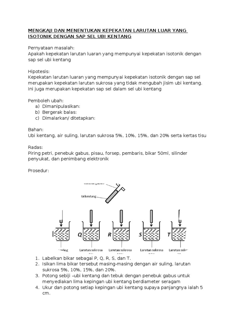 Botol reagen 250 ml dengan penutup picagari jam randik almari bikar 50ml silinder penyukat. Jika berminat boleh hubungi saya melalui whats app 012 9602274 cikgu zulkarnain bin jamaluddin. Share to twitter share to facebook. Mengkaji dan menentukan kepekatan larutan luar yang isotonik dengan sap sel ubi kentang.