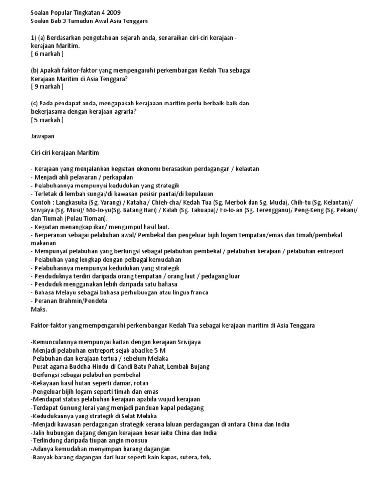 Menyatakan faktor perkembangan kerajaan maritim 3. 1 pelajar dapat menyenaraikan faktor faktor yang membawa kepada kemunculan kerajaan awal di asia tenggara. Huraikan faktor faktor yang mempengaruhi perkembangan kerajaan kedah tua sebagai pusat perdagangan di asia tenggara. Perkembangan pelabuhan di pulau jawa berkemungkinan menjadi antara faktor kemerosoton kedah tua.