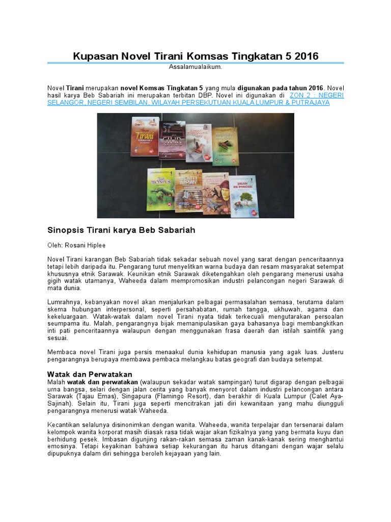 Kekurangan yang disedari secara bijaksana akan dapat menjadi. Sinopsis sinopsis keseluruhan tirani mengisahkan tentang seorang gadis yang bernama waheeda mahu menjadi cantik dan berhidung mancung kerana hidung asalnya pesek. Gaya bahasa huraian dan contoh novel tingkatan 5 diksi bahasa inggeris all yahoo.