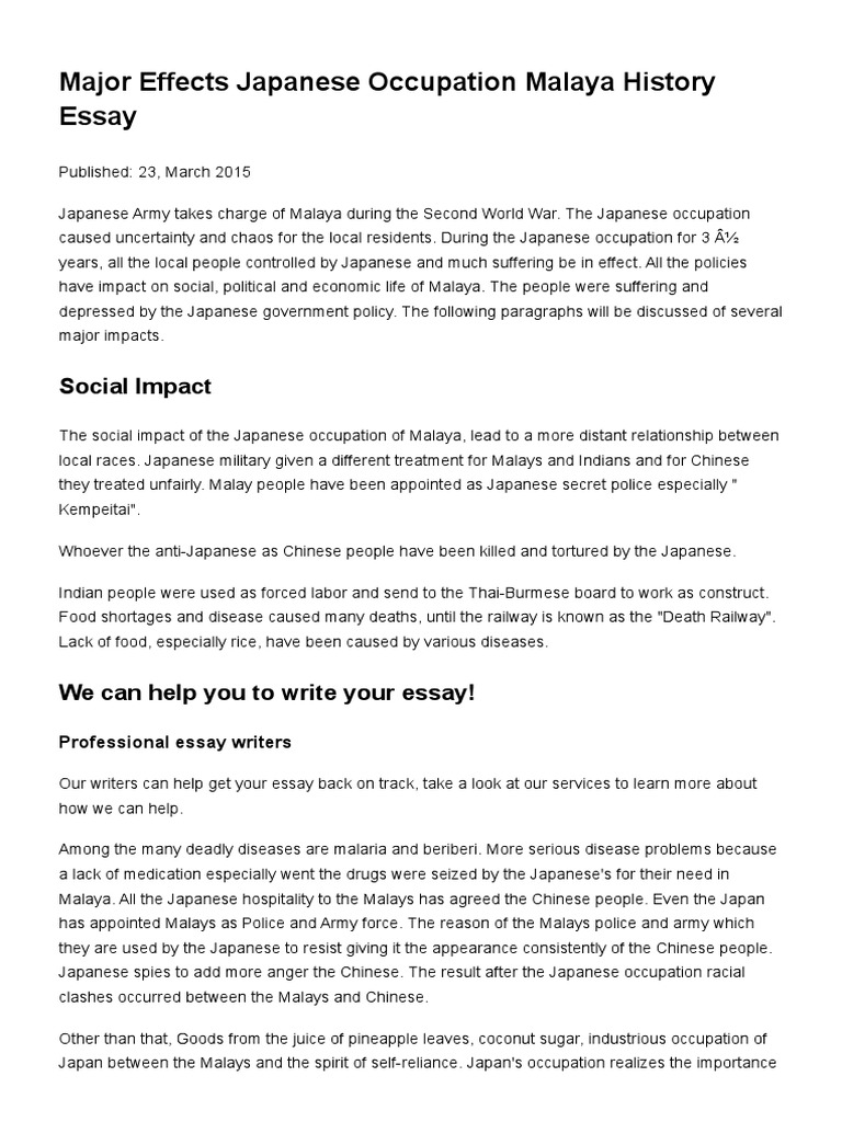 During the japanese occupation for 3 years all the local people controlled by japanese and much suffering be in effect. The japanese occupation of malaya. Japanese occupation of malaya the pictorial issues there is plenty of interest in this apparently straightforward set of stamps as susan mcewen demonstrates t he japanese occupied malaya from february 1942 to september 1945. The five papers which make up this collection examine the experiences of the malayan population under japanese occupation between early 1942 and august 1945.
