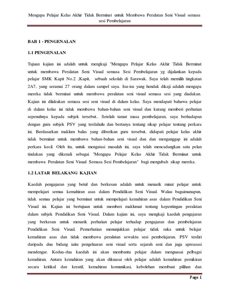 Pelan pembangunan pendidikan malaysia. Pendidikan menurut pengertian yunani adalah pedagogi iaitu ilmu menuntun anak. Isu keperihatinan yang dikaji tentukan tema isu keprihatinan kajian masalah. Mengapa pelajar kelas akhir tidak berminat untuk membawa peralatan seni visual semasa sesi pembelajaran page 1 bab 1 pengenalan 1 1 pengenalan tujuan kajian ini adalah untuk mengkaji mengapa pelajar kelas akhir tidak berminat untuk membawa peralatan seni visual semasa sesi pembelajaran yg dijalankan kepada pelajar smk kapit no 2 kapit sebuah sekolah di sarawak.