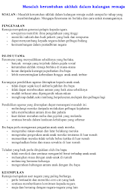 Remaja merupakan asset utama negara pada masa akan datang mereka memainkan peranan yang sangat penting dalam pembangunan negara. Punca punca keruntuhan akhlak remaja. Nyatakan punca punca dan cadangkan langkah langkah untuk mengatasi masalah ini. Kekurangan ajaran agama agama merupakan ajaran bagi seseorang insan untuk berlakuan baik.