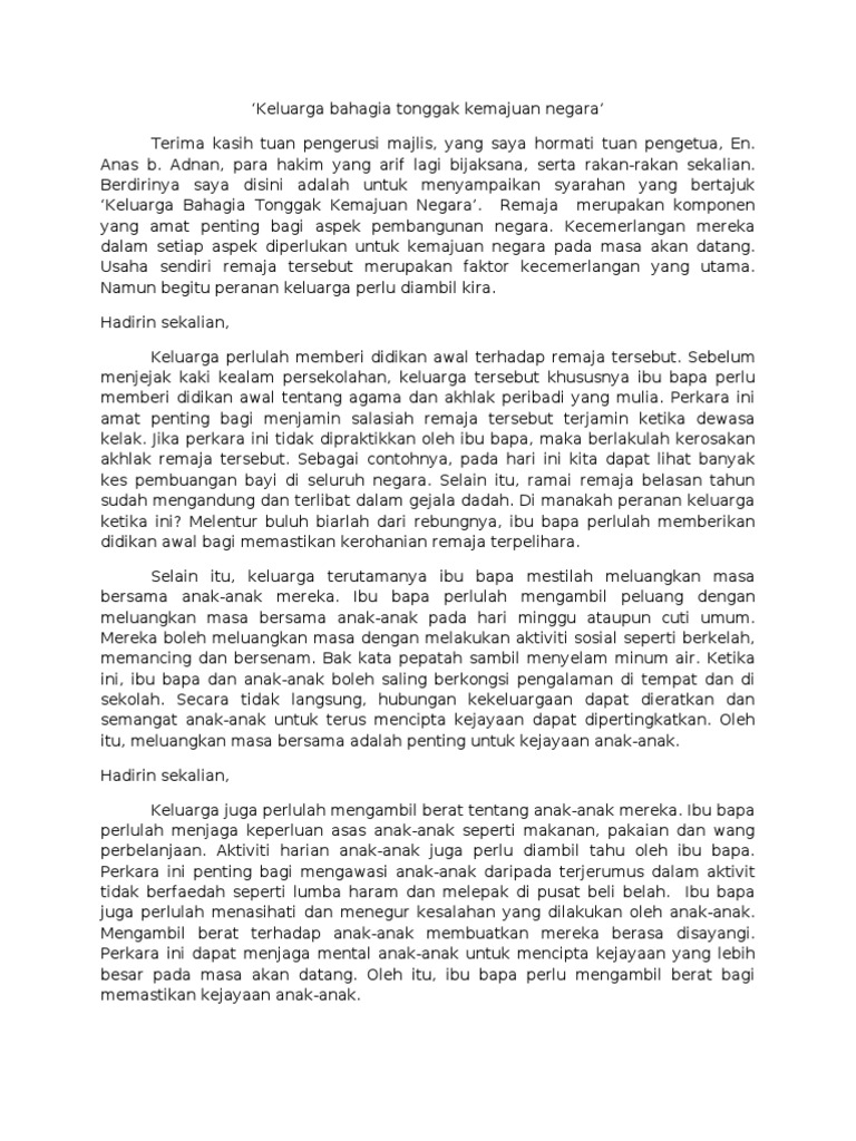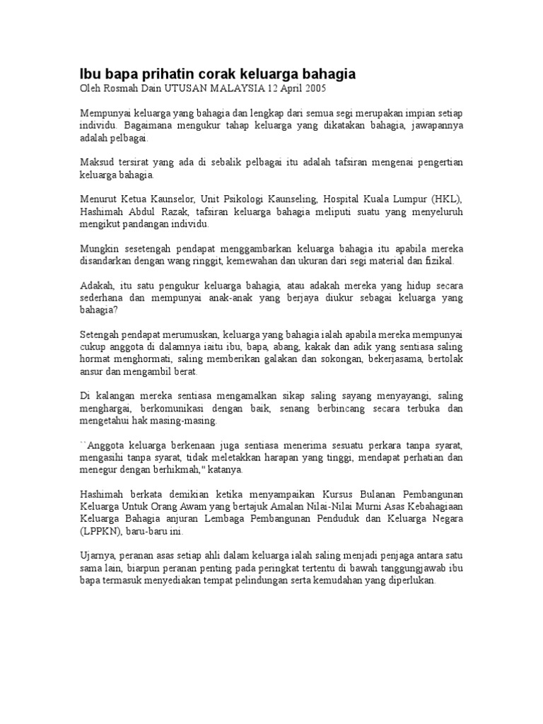 Karangan spm 7 peranan ibu bapa dalam pembentukan keluarga bahagia pendahuluan. Contoh karangan spm peranan ibu bapa untuk membentuk keluarga bahagia daripada keluarga terpancarnya sinar kasih sayang di antara ahlinya daripada keluarga lahir rasa menghormati dan saling memerlukan yang tidak terucapkan. Masyarakat merupakan antara elemen penting yang dapat menentukan pembentukan seorang individu yang kamil dan seterusnya menyumbang kepada pembentukan keluarga bahagia. Pelbagai masalah yang wujud di negara ini sering dikaitkan dengan kegagalan sebuah institusi keluarga.