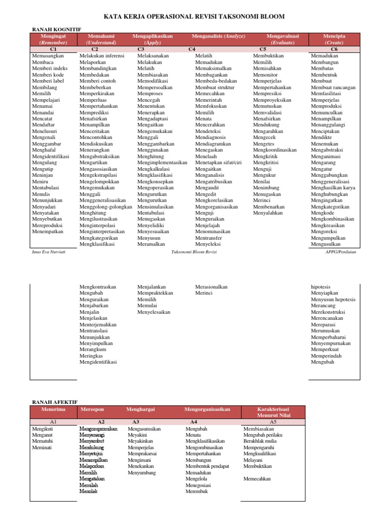 Kata Kerja Operasional Taksonomi Bloom Revisi Pdf