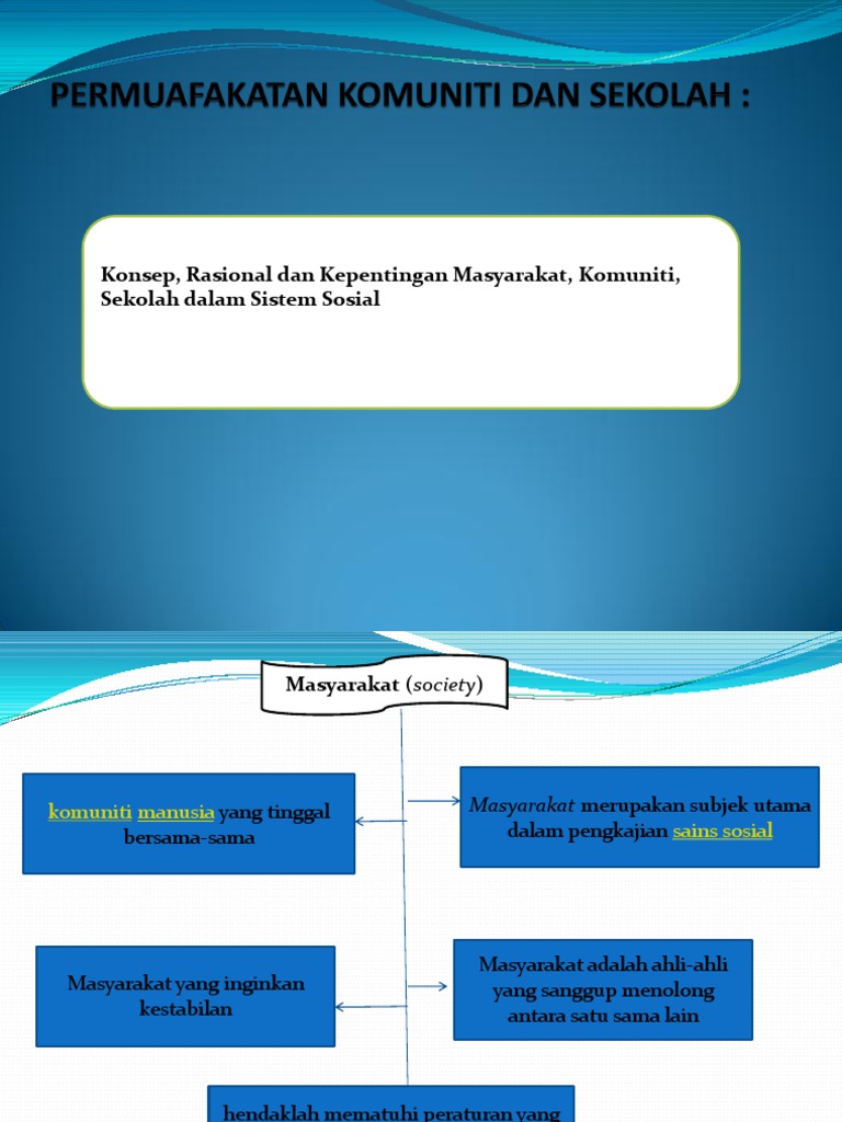 Permuafakatan antara sekolah dan komuniti banyak memberi manfaat namun kajian lepas menunjukkan permuafakatan antara sekolah dan komuniti masih terhad. Masalah ini disebabkan oleh. Dengan kata lain sekolah merupakan salah sebuah komuniti dalam masyarakat.