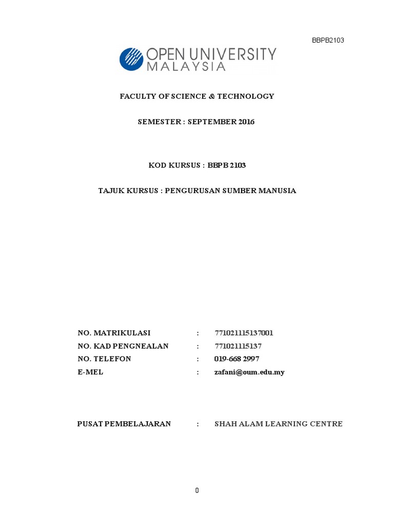 Oum bangi learning centre. Pengenalan pengurusan sumber manusia pengurusan sumber manusia memainkan peranan yang amat penting dalam mencapai tujuan ataupun matlamat pengurusan sumber manusia yang cekap dan berkesan akan menghasilkan individu yang berkualiti produktif dan seterusnya meminimumkan masalah yang berkaitan dengan sumber manusia masalah ini termasuklah. Perancangan yang dibentuk membantu pengurus menentukan matlamat kumpulan kerja dan membangunkan strategi yang menyeluruh bagi mencapai matlamat organisasi. Selain itu calon yang sesuai boleh diperoleh melalui sumber dalaman dan sumber luaran.