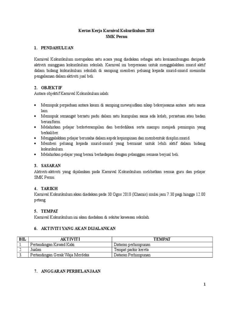 Kertas kerja karnival kokurikulum. Kertas cadangan minggu anti dadah. Karnival jualan hari kokurikulum rps girl s school grand sale ipoh sabtu. Guru guru lain juga diharapkan dapat berkreatif dengan mengubahsuai ikut kesesuaian seperti di setting sekolah masing masing. Pendahuluan karnival kokurikulum merupakan satu program atau acara yang diadakan sebagai satu kesinambungan daripada aktiviti kokurikulum mingguan sekolah.