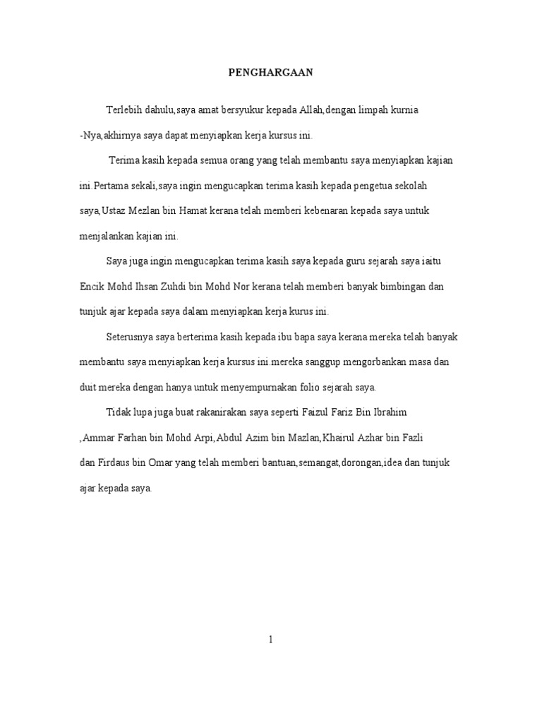 Latar belakang sejarah kawasan kajian. Rujuk kedudukan kawasan kajian dalam peta daerah anda pandang darat fizikal.