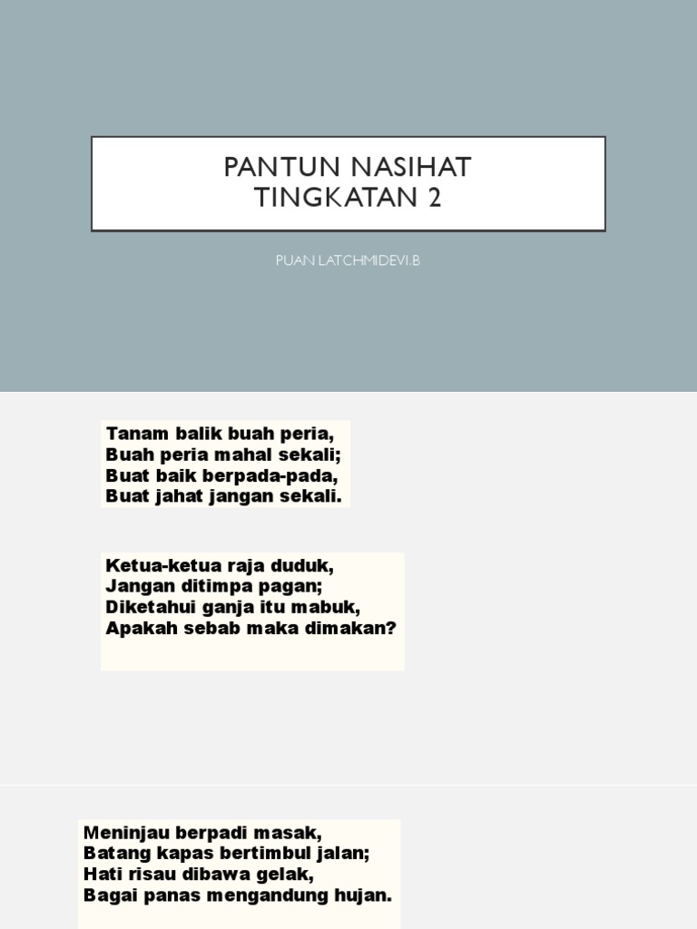 Puisi traditional pantun nasihat assalammualaikum dan selamat petang. Bahasa melayu tingkatan 2 isnin 11 april 2011. Kongsi ke twitter kongsi ke facebook kongsi ke pinterest. Puisi tradisional komsas tingkatan 2 pendahuluan pantun 4 yang berjumlah 7 rangkap ini termuat dalam naskhah antologi baik budi indah bahasa pada muka surat 12 dan 13.