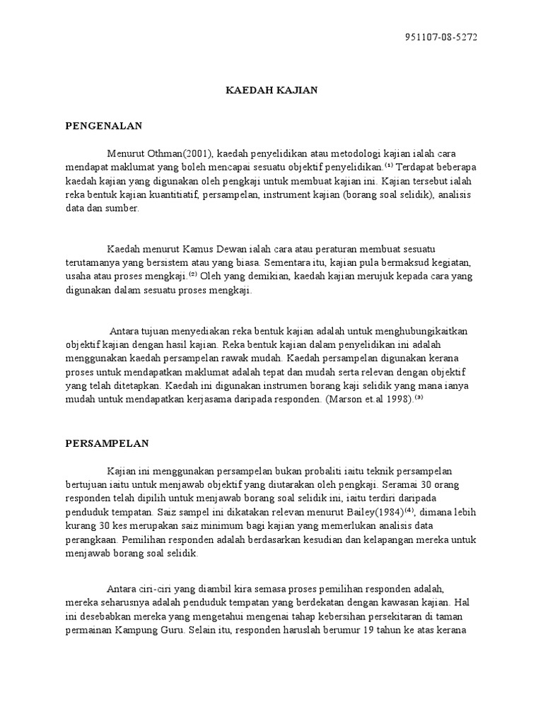 9 4 0 metodologi kajian 4 1 pendahuluan menurut kamus dewan edisi keempat metodologi membawa maksud sistem yang merangkumi kaedah dan prinsip yang digunakan dalam sesuatu kegiatan atau disiplin. Pengkaji telah menggunakan dua cara untuk mendapatkan maklumat bagi memenuhi keperluan. Maksud lain metodologi ialah kaedah jalan teknik gaya ragam rentak corak dan sistem. Pemilihan sampel untuk kajian ini dilakukan secara rawak mudah yang melibatkan 30 orang penduduk di kawasan sungai rasau klang selangor.