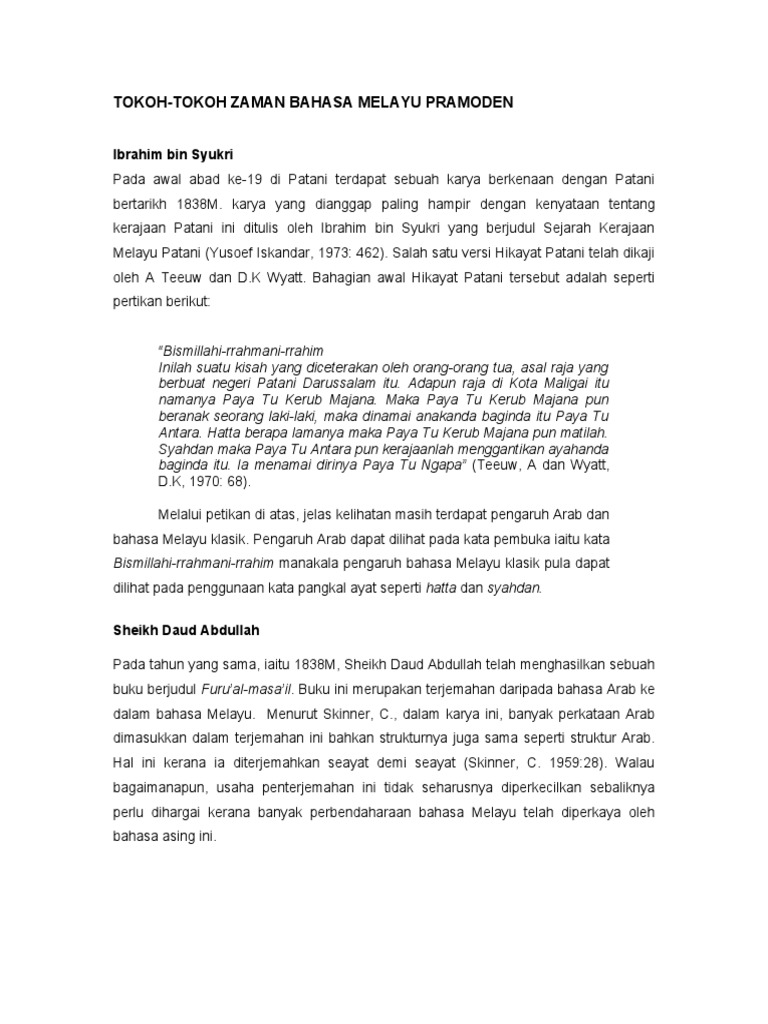 Dalam sastra melayu lama pengertian hikayat adalah cerita rekaan berbentuk prosa panjang berbahasa melayu yang menceritakan tentang kehebatan dan kepahlawanan orang ternama dengan segala kesaktian dan keanehan. Kemudian kembali ke jawatan lamanya sebagai penterjemah kanan bahasa melayu dan pengarang buku teks di pejabat pelajaran kuala lumpur ogos 1946 ogos 1947. Tetapi tidak sopan dalam bagi masyarakat melayu. Pertanyaannya tahukah kamu apa yang dimaksud tokoh.