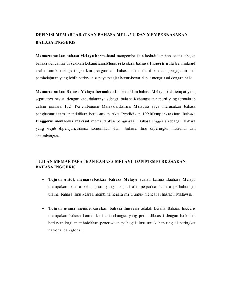 Memartabatkan bahasa melayu sebagai bahasa ilmu. Dalam usaha untuk memartabatkan pemahaman dan penggunaan bahasa melayu dalam kalangan generasi muda di negara hari ini. Dipolemikkan oleh pelbagai pihak dalam usaha untuk memartabatkan bahasa melayu sebagai bahasa ilmu. Selain menguasai dan mencintai bahasa kebangsaan sebagai warga negara malaysia kita perlu menguasai dan menghormati kepentingan bahasa inggeris serta menjadikan bahasa kebangsaan sebagai asas perpaduan negara. Pekan 25 julai para guru pensyarah pendidik dan ibu bapa perlu berperanan dalam usaha untuk memartabatkan pemahaman dan penggunaan bahasa melayu dalam kalangan generasi muda di negara hari ini.