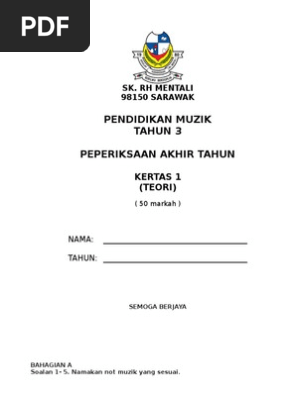 Tepuk tangan mengikut corak irama 5 latihan rekoder 1 2 3 penjarian not a b m s 57 latihan dari bar demi bar 8. Sulit 1 nama kelas dunia muzik mei 2016 1 jam sekolah kebangsaan skarok lubok antu ujian pertengahan tahun 2016 dunia muzik tahun 3 60 minit jangan buka kertas soalan ini sehingga diberitahu arahan.
