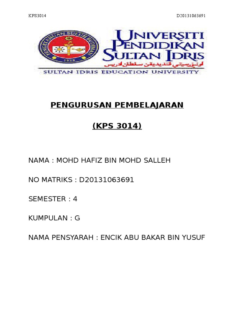 Nota kps 3014 pengurusan pembelajaran. Kes kes ini dapat digunakan dalam usaha untuk meningkatkan pembelajaran dan pengajaran selaras dengan falsafah pendidikan kebangsaan. 1 0 pendahuluan pengurusan ditakrifkan sebagai satu seni bagi melaksanakan sesuatu kerja yang terancang melalui pelaksanaan secara sistematik teratur dan mengikut garis panduan tertentu huslid 2005 pengurusan bererti proses untuk menjawab persoalan tentang sesuatu secara efektif dan efisien melalui dan dengan komuniti. Kps 3014 pengurusan pembelajaran wednesday 26 december 2018. Nota pengurusan pembelajaran bab 5 kuliah cik izazol binti idris ulasan bab 5 berdasarkan bab 5 iaitu pengurusan murid bab ini menerangkan mengenai sesuatu proses pengurusan yang merujuk kepada proses merancangm mengorganisasikan dan mengawal sesuatu perkara bertujuan untuk mencapai objektif tertentu.