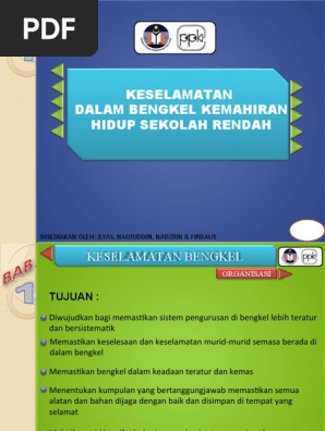 Kemaskan pakaian sebelum memulakan kerja serta memakai pakaian yang sesuai semasa melakukan kerja kerja bengkel. Menyatakan konsep keselamatan keselamatan pekerjaan dan keselamatan industri faedah keselamatan industri dan kepentingan mempelajarinya. Keselamatan kerja adalah menjamin keadaan keutuhan dan kesempurnaan baik jasmaniah maupun rohaniah manusia serta hasil karya dan budayanya tertuju pada kesejahteraan masyarakat pada umumnya dan manusia pada khususnya. Antara contoh contoh bahaya yang terdapat di bengkel ialah.