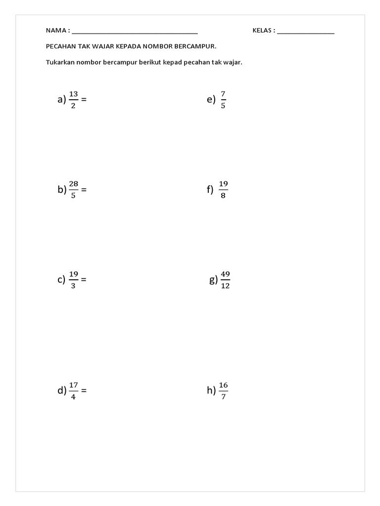 Pecahan tak wajar dan nombor bercampur. Latih tubi pecahan tahun 4 1. Pecahan wajar pecahan wajar pecahan wajar pecahan wajar. 3 menyelesaikan masalah harian yang melibatkan penambahan pecahan wajar.