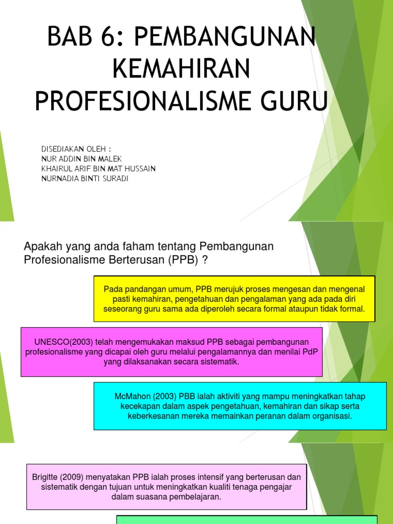 Pelan pembangunan profesionalisme berterusan pppb 1. Pelan pembangunan profesionalisme berterusan guru dan pemimpin sekolah edisi 2014 10 11 singkatan 12 pengenalan 14 transformasi amalan pembangunan profesionalisme berterusan 15 pembangunan profesionalisme berterusan ppb 17 takrifan 17 matlamat 17 kompetensi profesional 17 perincian dimensi kompetensi profesional 18 atribut yang dihasratkan 20 peranan dan tanggungjawab 20 model pembangunan. Ketua pengarah pendidikan datuk seri dr khair mohamad yusof berkata pppb memainkan peranan penting dalam membangun atribut dan kompetensi yang dihasratkan supaya guru serta pemimpin sekolah dapat menyampaikan perkhidmatan.