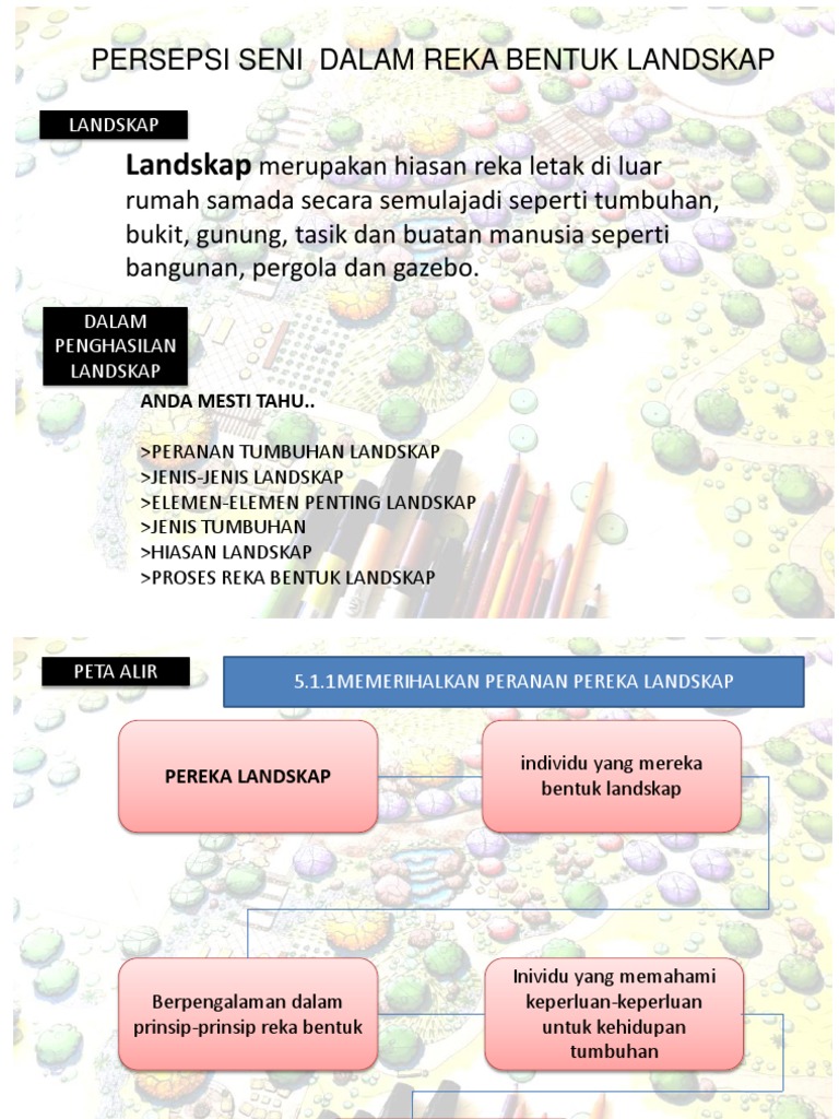 Semoga segala ilmu yang paparkan dapat membantu pelajar dan guru dalam meningkatkan mata pelajaran pendidikan seni visual. Definisi landskap landskap ialah istilah daripada bahasa belanda bermaksud pemandangan desa landskap merupakan apa apa yang terdapat di permukaan bumi sama ada elemen semulajadi seperti tumbuh tumbuhan tasik gunung ganang sungai laut air terjun paya dan hutan belantara atau elemen.