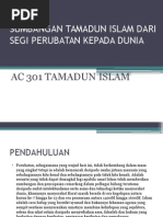 Pengenalan sumbangan tamadun islam kepada dunia. Kemunculan ilmuan islam 40. Sumbangan tamadun islam dalam pembentukan tamadun dunia memang tidak dapat dinafikan. Umat islam dari tamadun islam yang diterima mereka telah mencipta dan mewujudkan tamadunnya sendiri iaitu satu tamadun yang teragung dengan segala kepelbagaian pencapaian dan kegemilangannya yang lahir dalam kesatuan. Tamadun islam merupakan sebuah tamadun yang amat berbeza dengan tamadun tamadun dunia lain.