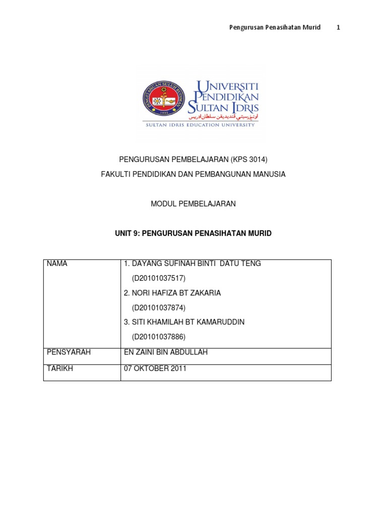 Pengurusan penasihatan murid pdf. Muat turun surat siaran kementerian pendidikan malaysia bil. Kps3014 penasihatan murid kumpulan magga 1. Pengurusan pembelajaran kps 3014 projek berasaskan sekolah pengurusan penasihatan murid ahli kumpulan 9 mangga nuraznida bt nordin nik zahirah bt nik muhamad mustapha nur tasnim bt hashim noor azlin bt azman 2. Pengurusan penasihatan muridnama ahli kumpulan noor azurah abdul razak d20101037502 wan norazwani mahusin d20101037506 nur faralina asrab ali d20101037415 ira nusrat jaafar d20101037533 nor fadilah zakaria d20101037413 2.