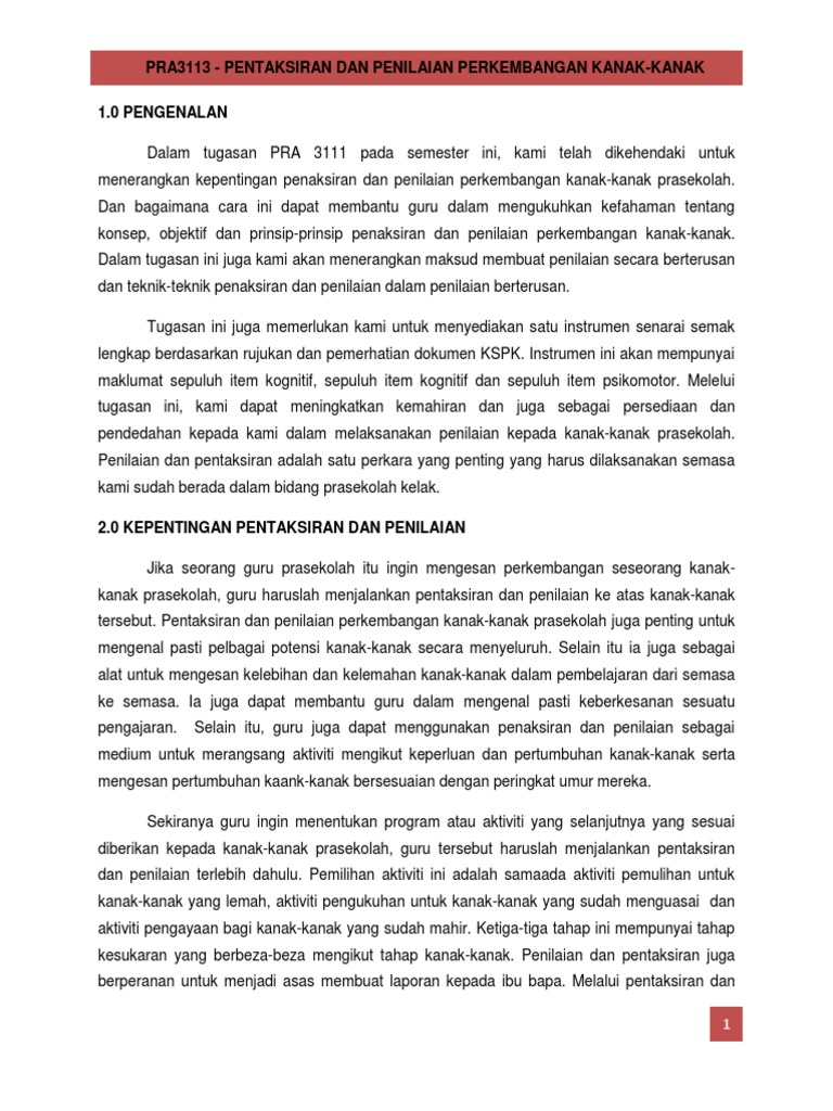 Pentaksiran Dan Penilaian Kanak Kanak Prasekolah Pdf