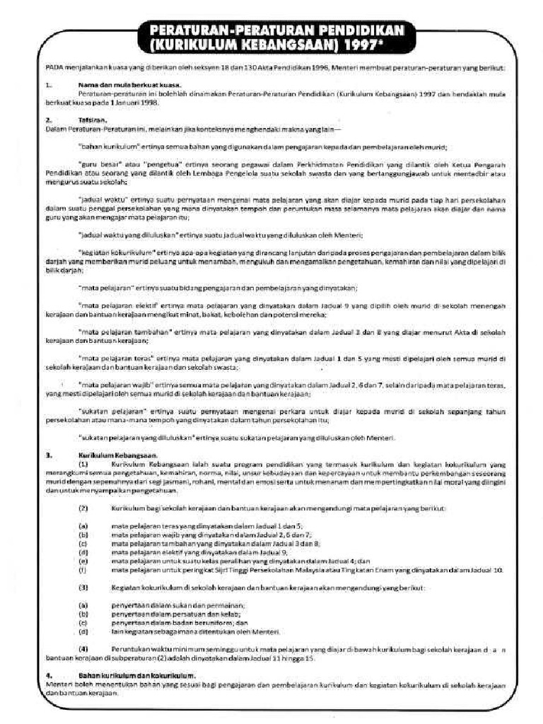 Peraturan Peraturan Pendidikan Kurikulum Kebangsaan 1997 Pdf