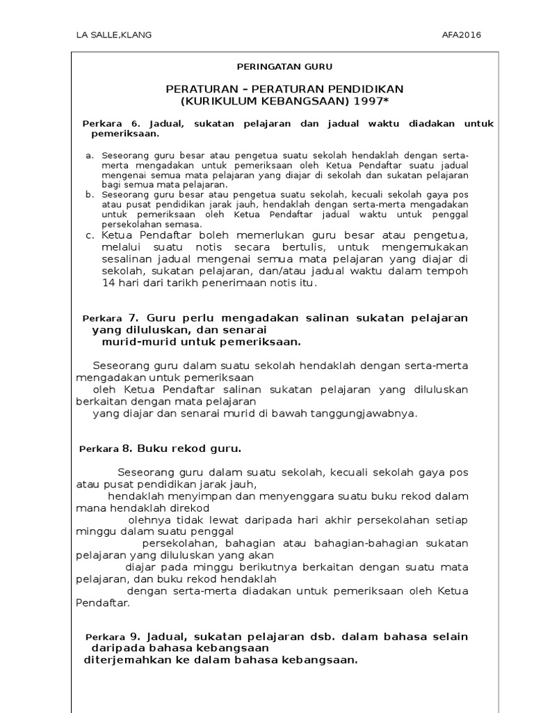 Apa yang saya maksudkan ialah peraturan yang lahir daripada akta ini dinamakan peraturan peraturan pendidikan kurikulum kebangsaan 1997. Melaksanakan kokurikulum di sekolah adalah wajib. Kehendak untuk mengikuti kegiatan kokurikulum 9 seseorang murid berkeperluan pendidikan khas yang ditentukan oleh panelsebagai sesuai untuk mengikuti pendidikan khas di bawah subperaturan 5 1 hendaklah mengikuti kegiatan kokurikulum sebagaimana yang ditakrifkan dalam peraturan peraturan pendidikan kurikulum kebangsaan 1997 p. Nama dan mula berkuat kuasa.