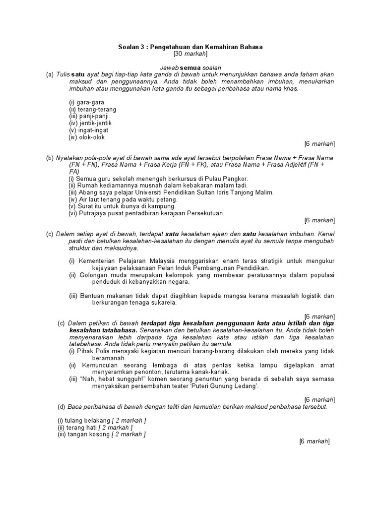 Soalan 3 Pengetahuan Dan Kemahiran Bahasa