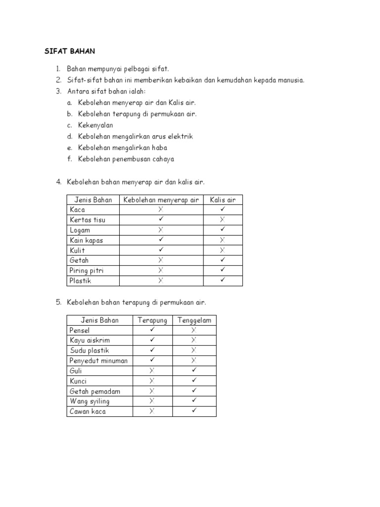 Kebolehan terapung di permukaan air. Sains tahun 4 sekolah kebangsaan. 31 comments fatin alya batrisyia. Sifat sifat bahan ini memberikan kebaikan dan kemudahan kepada manusia.