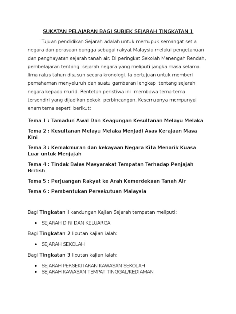 Sukatan pelajaran sejarah tingkatan 1. X kandungan x unsur patriotisme x struktur disiplin sejarah x petunjuk pemikiran kritis dan kreatif 4 penerangan tentang lajur dan aras 15 pendekatan isi kandungan kurikulum 18 huraian sukatan pelajaran tingkatan 5 19 58. Buku teks digital asas btda sejarah tingkatan 1 satu. Ia adalah mekanisme dalam mencapai sesuatu objektif pembelajaran yang kompetatif. Nota ringkas para pelajar tingkatan 1 boleh membaca atau muat turun download nota ringkas sejarah tingkatan 1 yang lebih kemas melalui link berikut atau lihat menu di sebelah kanan.