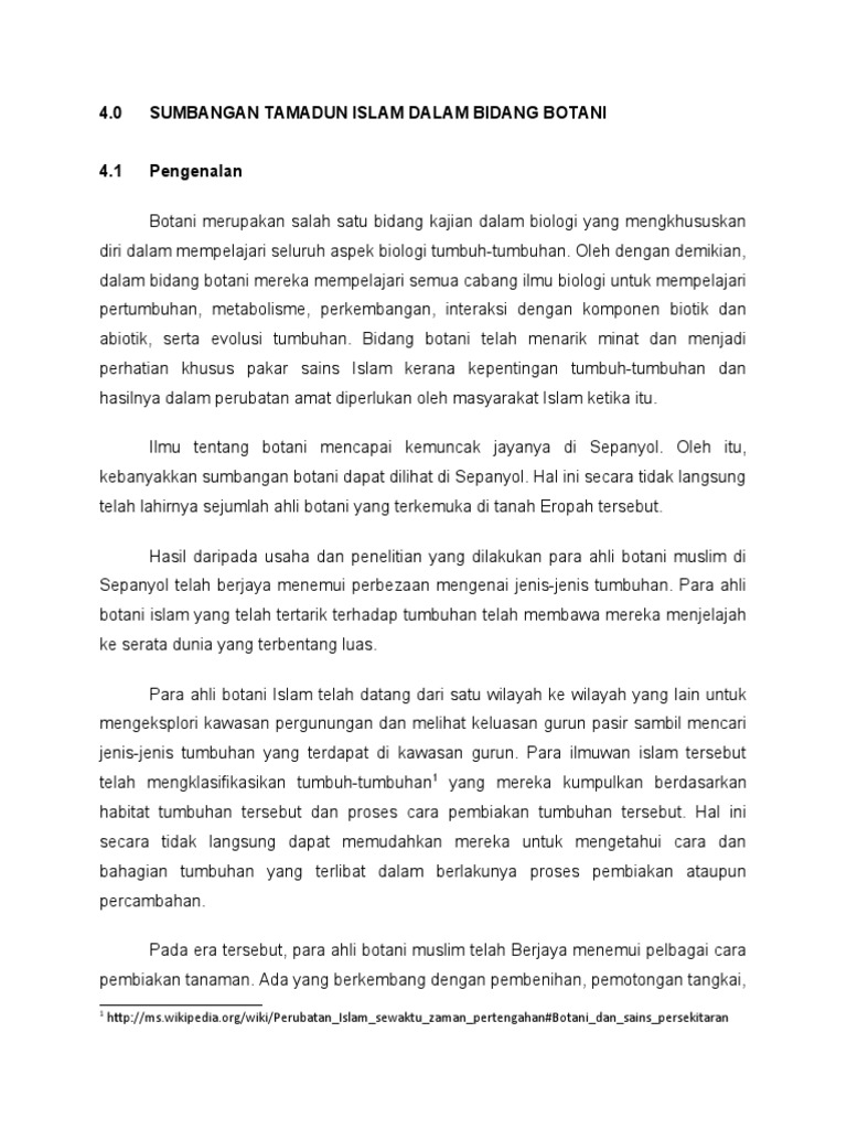 Ilmuan serta cendekiawan islam seperti ibn sina atau avicenna ibn rushd atau averroes dan al khawarizmi telah menyumbang kepada pembangunan sains dan teknologi dunia. Malahan pembangunan ilmu dalam dunia islam telah diakui sebagai mangkin kepada zaman pembaharuan bahasa inggeris. Al farabi turut menghasilkan sebuah buku yang mengandungi pengajaran dan teori muzik islam yang diberi judul al musiqa haliza 2006 mahayudin 2004 abd alim dan syed idrus 1995. Secara kesimpulannya setiap tamadun yang pernah wujud mempunyai keistimewaan dan ciri ciri tersendiri dalam memastikan kelangsungan dan perkembangannya.
