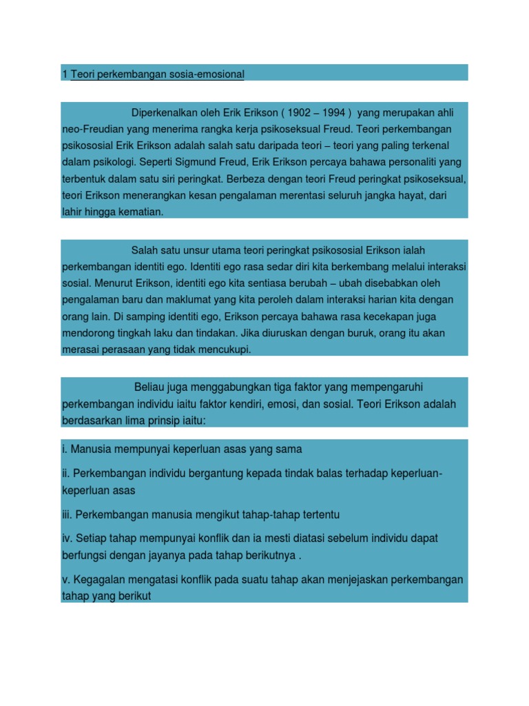 Teori erik erikson 8 peringkat pdf. Manusia mempunyai keperluan asas yang sama. Teori perkembangan psikososial menurut erik erikson erikson 1950 1968 mengatakan bahwa manusia lebih berkembang dalam tahap psikososial daripada tahap psikoseksual. Semua pelajar di dalam pelbagai peringkat perkembangan. 8 kata pengantar bismillahirrahmanirrahim assalamu alaikum warahmatullahi wabarakatuh.