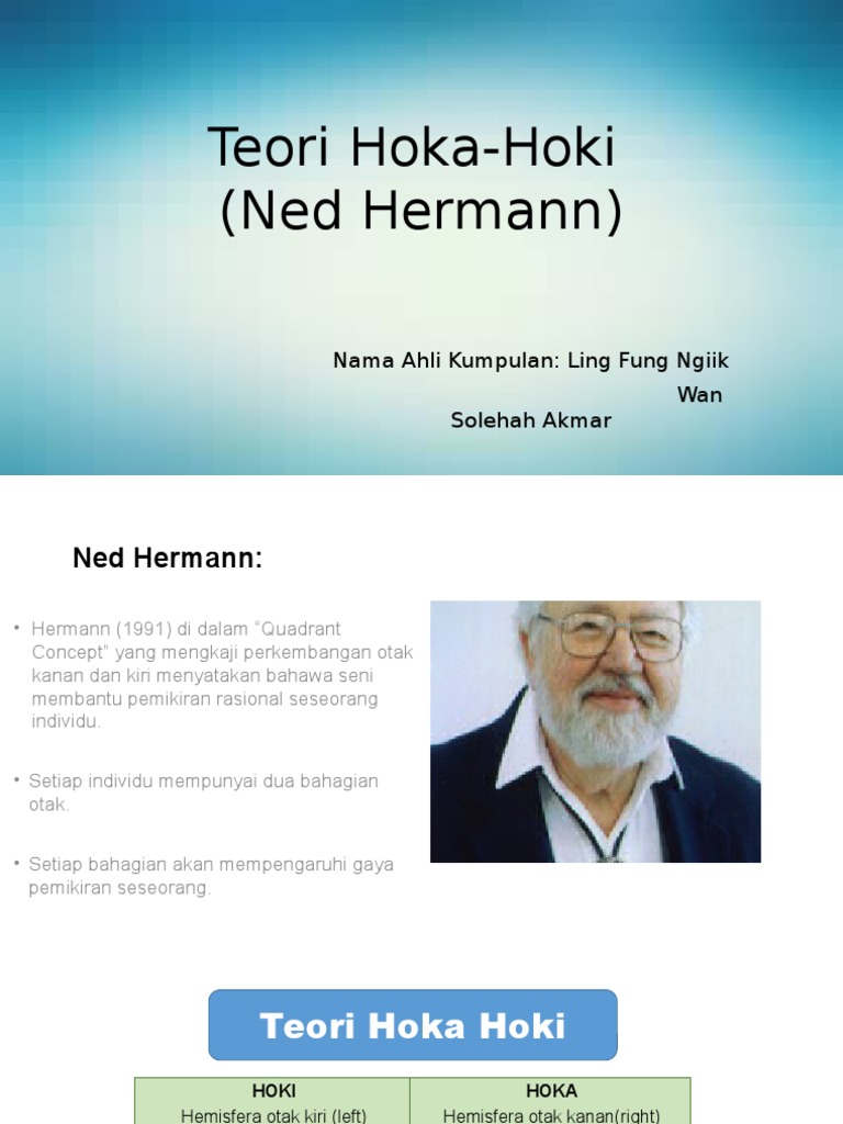 Untuk dapat memiliki keterampilan bermain hoki dibutuhkan kesabaran dan ketekunan ekstra. B teori kecerdasan pelbagai teori kecerdasan pelbagai telah diperkenalkan oleh howard gardner 1983. Hermann 1991 mengkaji perkembangan otak kanan dan otak kiri di mana fungsi otak boleh dibahagikan kepada 4 kuadran. Perincian tentang fungsi fungsi hoki dan hoka dapat disimpulkan dalam jadual seperti berikut jadual 4 1 fungsi hoki dan hoka hemisfera kiri hoki hemisfera kanan hoka memfokuskan pertuturan urutan dan persepsi terhadap masa.